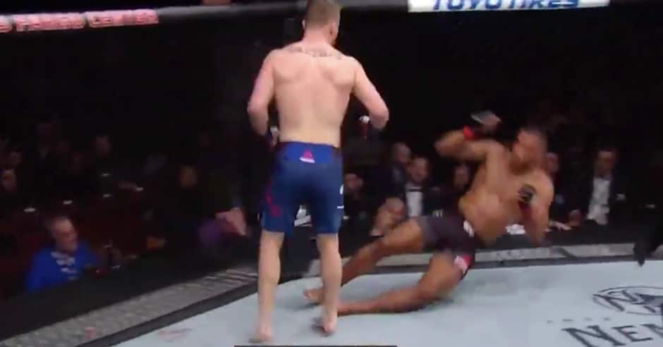 The end came at 2:30 of round one. Gaethje landed a big right hand that stiffened Barboza and sent him straight to the canvas. Referee Kevin McDonald immediately stepped in and stopped the fight, and Gaethje did a back flip off the top of the Octagon.