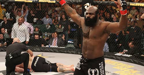 The fourth fight is his notorious main event with MMA legend Ken Shamrock that set records on Spike TV. Many in the MMA community were skeptical of the fight, but nobody denies the ending – a brutal KO. Another first round win for Kimbo.