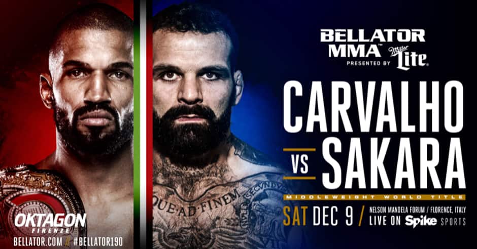 Bellator 190: Carvalho vs. Sakara is held on December 9, 2017 at Nelson Mandela Forum in Florence, Italy. A Middleweight world title fight between Rafael Carvalho and Alessio Sakara serves as the main event.