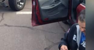 I reached back like I was going to hit him and right then he yielded to everything. I pulled him out of the car.