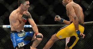 Weidman most likely won the first round on the judges score cards by landing solid ground and pound mixed with a couple takedowns. Starting out the second round, Anderson Silva threw a hard inside leg kick, which Weidman checked, and Silva’s tibia and fibia seemed to split in half and wrap around Weidman’s leg. Silva immediately fell to the ground and the referee halted the bout.