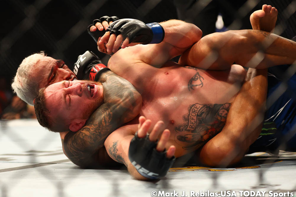In the night’s main event, Charles Oliveira (33-8 MMA, 21-8 UFC), who was not eligible to win the UFC lightweight title due to missing weight at Friday’s official weigh-ins, took on challenger Justin Gaethje (23-4 MMA, 6-4 UFC), surviving an early barrage of strikes to come back and submit “The Highlight” in the opening frame.