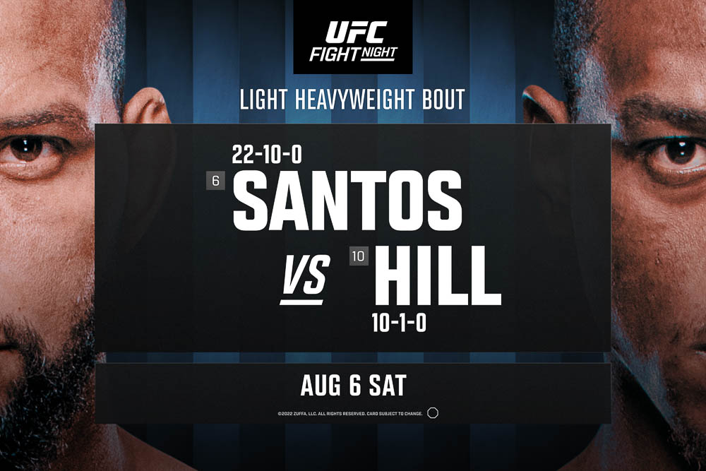 It’s a battle between light heavyweights coming at the same goal from opposite directions as Thiago Santos (22-10 MMA, 14-9 UFC) and Jamahal Hill (10-1 MMA, 4-1 UFC) cross paths on their shared quest to challenge for championship gold.