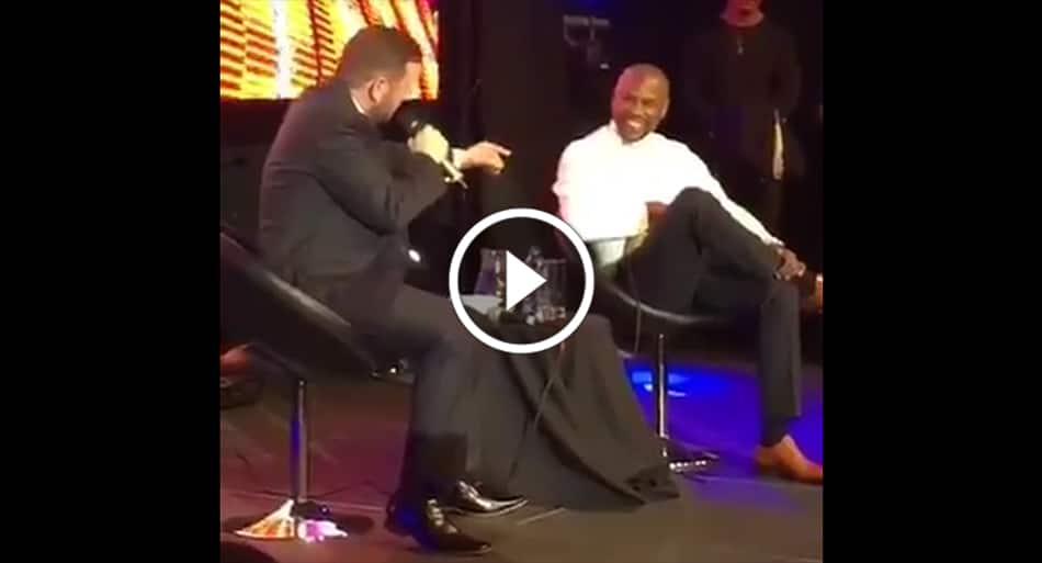 Irish comedian Al Foran shared on his Twitter account the moment where he delivered his pitch perfect Conor McGregor impression directly to Floyd and joined him on the stage to give his take on why the Boxing vs Mixed Martial Arts super fight should happen.