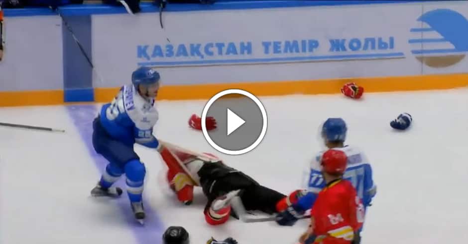 August 8, 2016. Russian League hockey teams HC Kunlun Red Star and Barys Astana are playing a friendly pre-season game… until things get south just 3 minutes in.