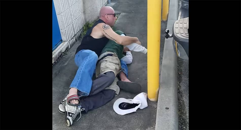 Dennis Davidson is a BJJ black belt and MMA fighter who trains at one of the best MMA camps in the world, American Top Team. He was peacefully walking down the street with his wife when a homeless man tried to assault the couple. The black belt used his grappling skills to neutralize him while waiting for the police to come.