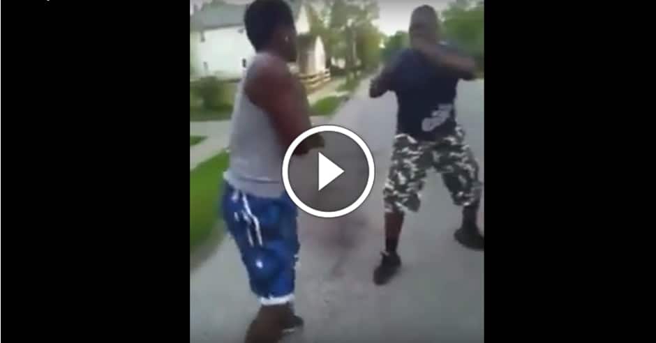 Blue-shirt continues to employ psychological warfare, asking, what are you throwing weak sh*t like that for? when gray-top does land a punch to the body, and then mocks his constant head movement, saying, what you ducking for? I ain’t throwing nuttin’.