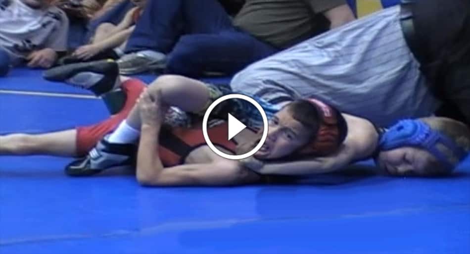 A rap song plays as the young wrestler body slams one boy onto his back, wraps another into a headlock and uses his leg like a vise to pin a third, all while strutting in his singlet like a 3-foot-10 Popeye.